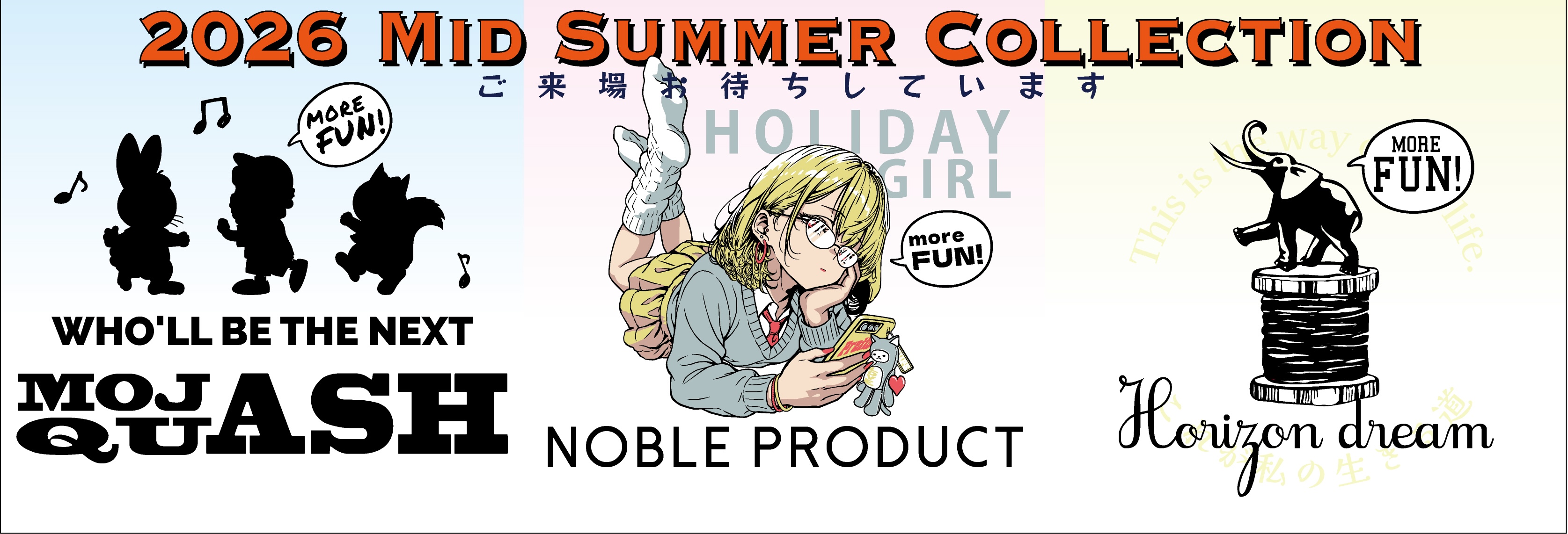 今回の展示会では、若年層に人気の2000年代ファッションのエッセンスを取り入れた鮮度あるアイテムを展開します。また、好調の「休日少女」シリーズは、雑貨を含めさらにラインナップを充実!インバウンドのニーズに対応するアニメ+和柄の融合をお楽しみください。